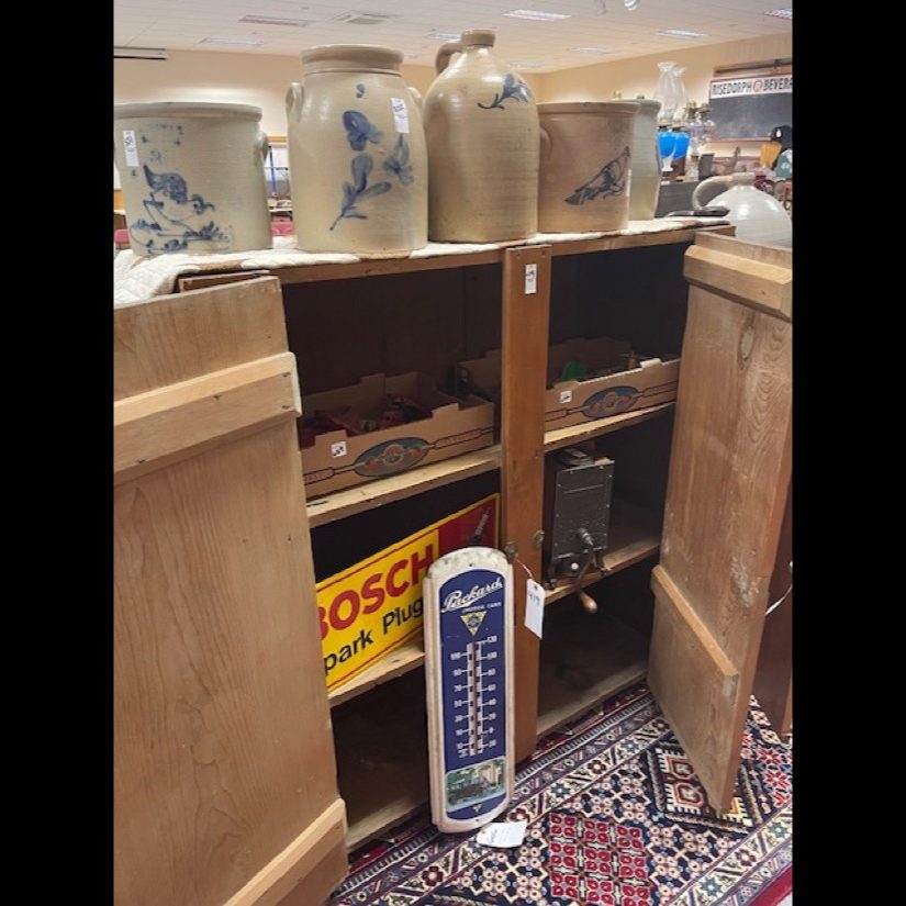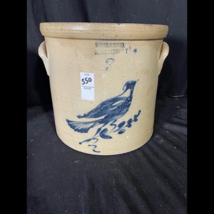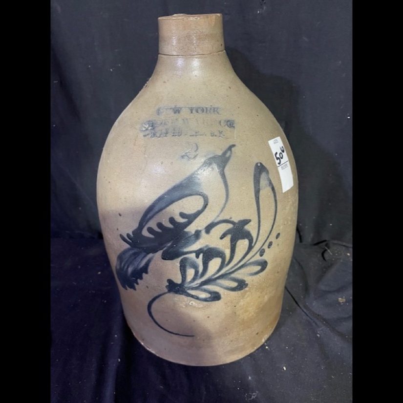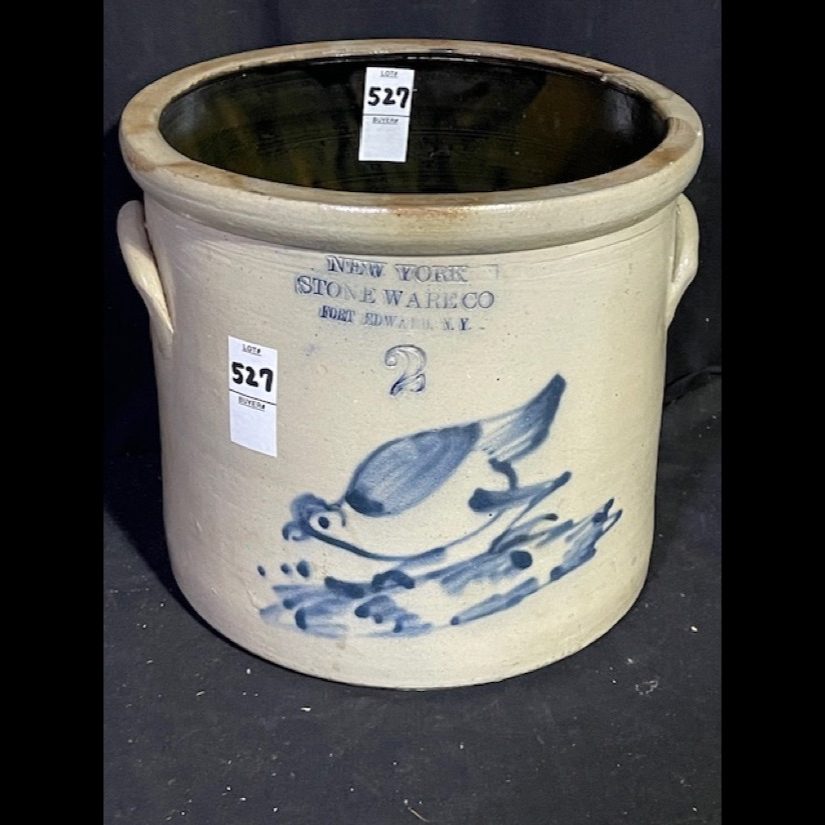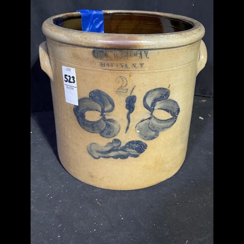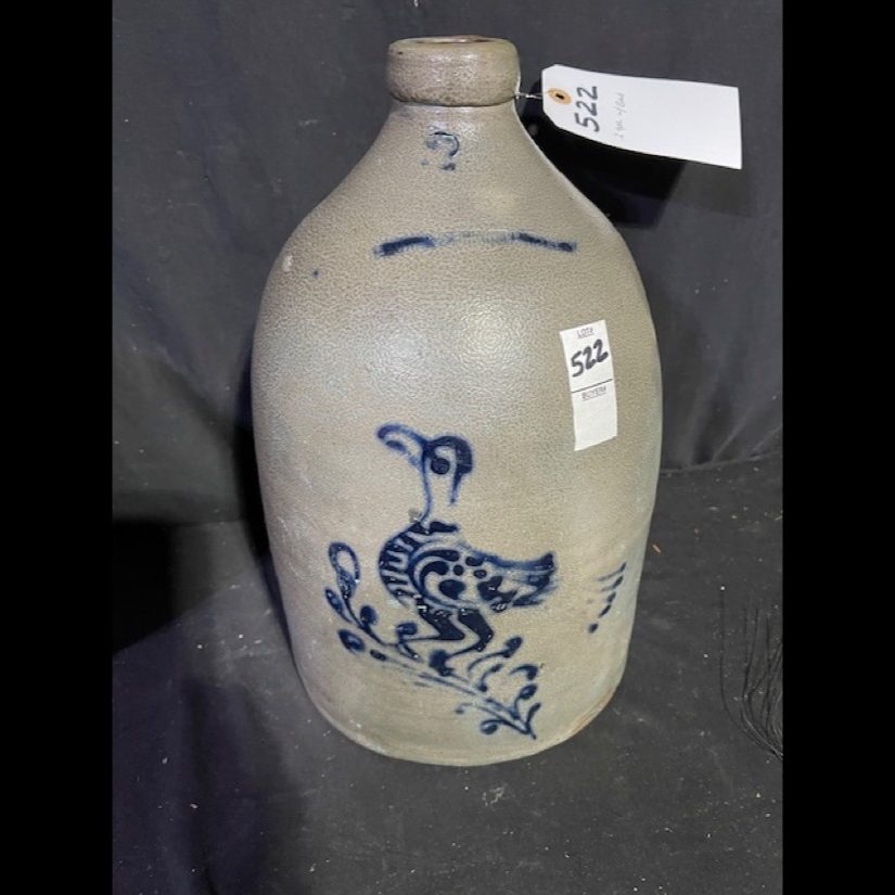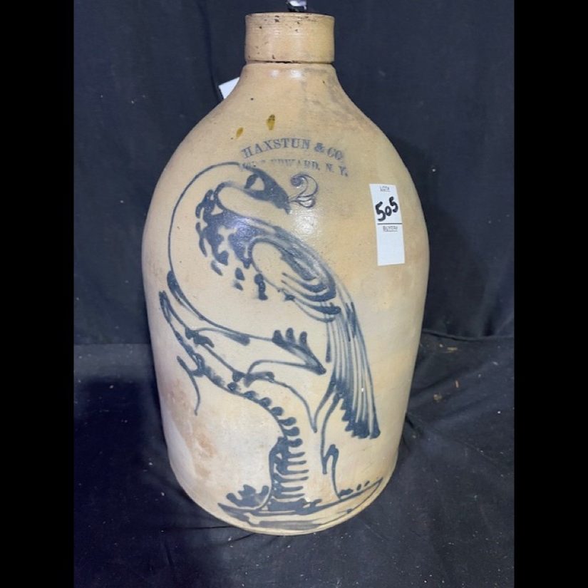 Rare – John Burger 5 gal. Churn w/Bird Perched on Sunflower – Wow!, Haxston & Co. 2 gal. Peacock on Tree, John Berger – 6 gal. Blue Wreath (Monumental Size) – NY Stoneware Co. 2 gal. Jug w/Bird, NY Stoneware Co. Fort Edward 3 gal. Crock w/Bird w/Lid, North Edward 5 gal. Crock w/db Bird, 2 gal. WV Decorated Crock, 3 gal. Decorated Slip – T. Anderson WV, Taft Co. Keenen IL. Jug w/Bird, West Troy NY Pottery Jug w/Bird, Ovoid JF Brayton & Co. Utica 1833-37, Haxstun & Co. 2 gal. Peacock in Tree, JE Norton Bennington Vermont, C. Boynton & Co. Troy NY Ovoid Decorative Jug, Return to James FEE & Bros. N. Wayte Rochester NY Jug, WM-A’Macquoid & Co. NY 1 1/2 gal. Decorative w/Flower Crock w/Lid, Decorated Spit-tune, Whites Utica 2 gal. w/Bird Crock, Berger & Lang Roch. 2 gal. Decorative Jug, Gate City Water Cooler, dated 1896 Decorative Bird on Branch, Belmont Ave Pottery Decorated Crock, NY Stoneware Co. Ft Edward 2 gal. w/Pecking Bird Crock, West Troy Pottery 2 gal. w/Bird, S. Hart Fulton 2 gal. Dotted w/Bird Crock, 2 gal. Jug w/Decorated Blue Anchor, 2 gal. Jug w/Dotted Bird on Branch, EA-Montell Olean NY 3 gal. Double Flower Churn, 6 gal. Ottman Bros. Co. Fort Edward NY Water Cooler Decorative Wreath, 4 gal. Water Cooler w/Bird, E. Norton Co. Bennington Vermont 2 gal. Jug, 2 gal. Havana HM Whitman 2 gal. Crock w/Blue, J. Berger Jr. 3 gal. Crock, Haxstun Ft. Edward NY 2 gal. w/Bird, Haxstun Ft. Edward NY 4 gal. w/Blue, J. Fisher Co. 3 gal. w/db. Flower, John Berger Roch. 6 gal. w/Blue Wreath – Monumental Size, White in Wood Binghamton NY 3 gal. Crock w/Bird, J.M. Pruden Elisabeth NJ Jug w/Blue, PA Decorated Cake Crock w/Lid – Rare!, 2 gal. Red Wing Crock, Hamilton & Co. Greensburrow PA Advertising Crock, A.L.H YSSONG Bloomsburg PA 3 gal. Dec. (Jewish Symbol), 4 gal. Insight db. Swan Crock, Whites Utica 2 gal. Crock w/Flower, Whites Binghamton #6 Batter Jug, Julius Norton Bennington Vermont 2 gal. Decorated, Haxston Co. Ft. Edward #4 Cobalt Decorative Bird, #5 Charleston Water Cooler w/insist. Blue Leaf, F.B. Norton Co. Worcester Mass. Cobalt Blue Dec., L. Seymour Troy Ovoid Jug w/Blue Slip, ST Brewer Havana Jug, A.P. Donaghou Parkersburg WV 2 gal. Crock, Summerset Potters Works #2 Decorated Master Cake Crock, Hamilton & Greensburrow Stoneware Jars, Fresh Clams W.A. Holt & Co. Labeled Advertisement Jug – Original Paper Label, Dayshine Bleach Paper Labeled Jug, Pee-o-Day Chicken Stoneware Waterer, FH Cowden Harrisburg Crock, Goodwin & Webster Hartford Ovoid Jug, Liquor/Merchant Jugs, & Numerous other pieces of Early Stoneware. Tremendous Music Box Collection – From the Richard & Alice Bogert Estate – Elgin PA