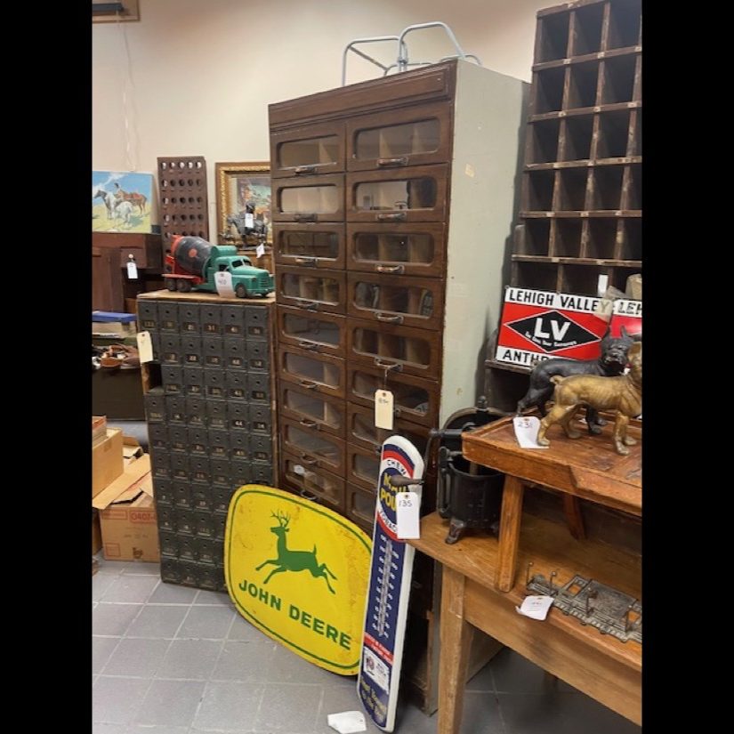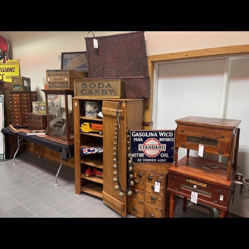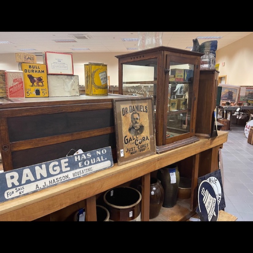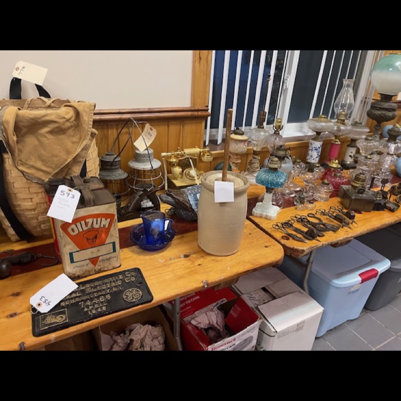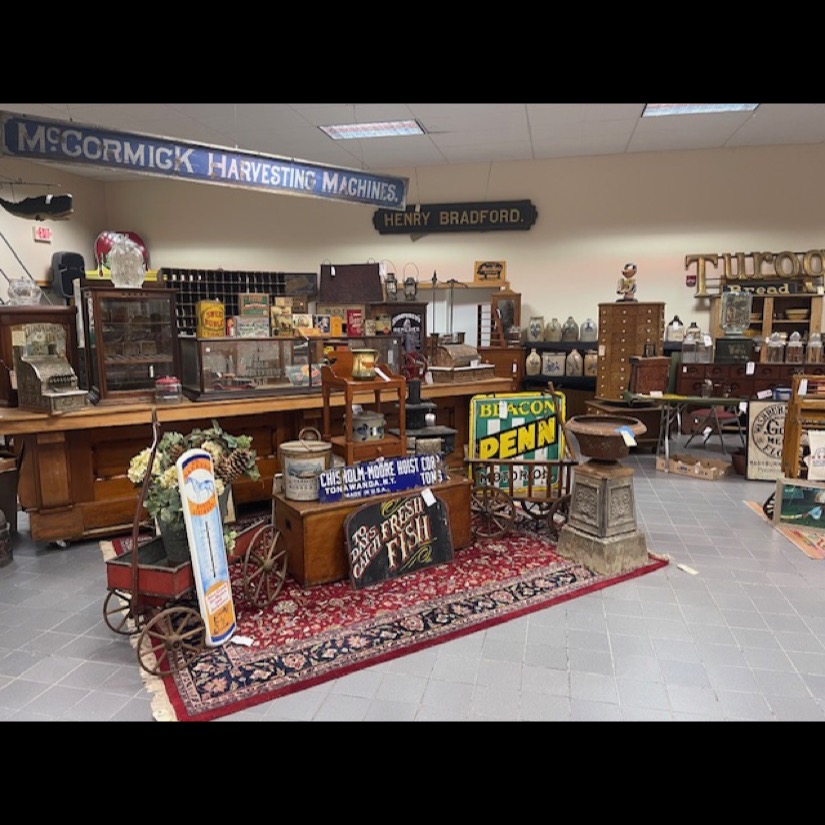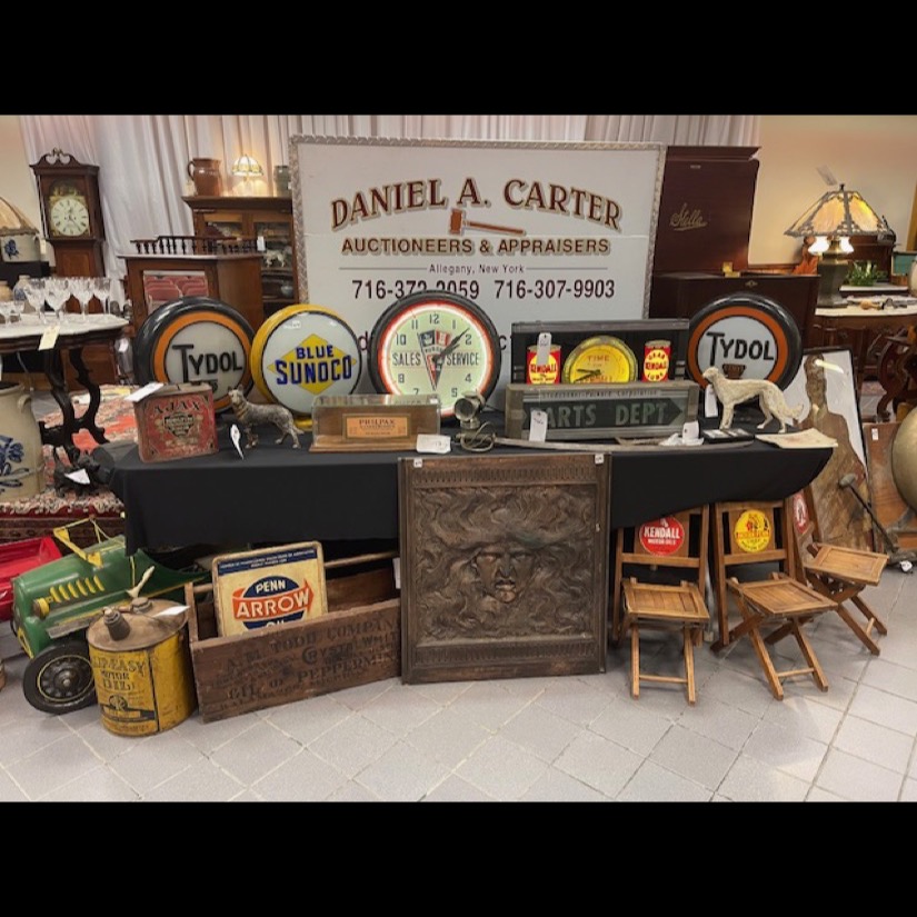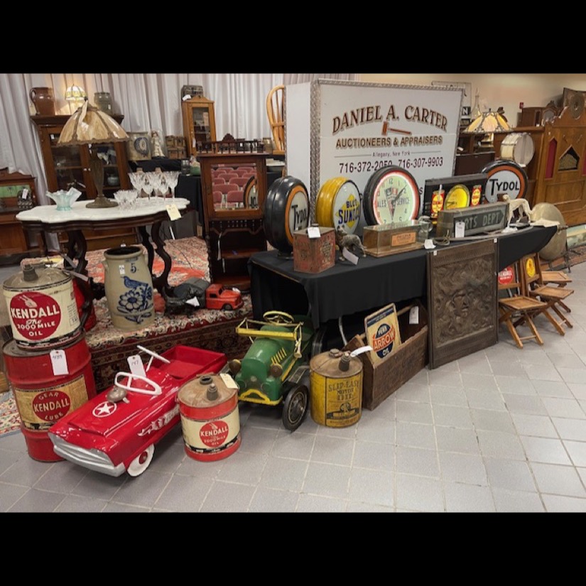 Exotic Cow Hide, Grisswold Fry Pan Set, Brass Locomotive Bell, Early Brass Ships Bell of the St. Lawrence River Liners Ship (Historical Pc.), Oak Leaded Glass Lawyers Bookcase, 2- Great Wooden Pumpkin Wagons, Civil War Sword, 12′ McCormick Harvesting Machine Wooden Farm Sign (Original Rare Find), Slant Wood Grain Box, Wooden Work Benches w/Vises, Massive Blacksmith Post Vice (Monster Size), Early Pedal Car, Firemans Copper Weathervane (One of a Kind), Metal Signs, Massive Crout Crock, Snow Shoes, Lg. Blacksmith Anvil, Child’s Pull Wagons, Early Wall Clocks, Wooden Grain Measures, Oak Fireplace Mantle, Oak Raised Panel Rolltop Desk, Hudson Oil Adv. Clock, 2 – Original Tydol Gasoline Globes (scarce), Adv. Thermometers. Service Station Photos, Sev. Brass National Cash Registers, Early Postal Office Cubbies, 2 – Octagon Hardware Store Revolving Multi Drawer Screw/Bolt Bins, Lg. 6′ Wooden Indian Cigar Statue, Master Size Dble Wheel Cast Iron Coffee Mill, Apothecary Cabinets, Spool Cabinets, Dye Cabinets, Seed Displays, Child’s Cast Iron Stoves, Dr. Daniels, Peanut Jar Collection, Store Display Cases, Lg. Wooden Barber Pole, Arrow Collers Display Case, Early Glass Apothecary Jars, Fabulous 16′ Country Store Counter (Solid Cherry) Wow!!, Scientific Instrument Floor Standing Antique “A. Bardou” Brass Telescope (Late 19th century) – Scarce!!, Incredible Lighted neon Kendall clock “Time for Kendall” (Rare one of a kind), Kendall Porcelain Double Sided Signs, Early railroad luggage wagon (Rare), Kendall / Quaker State clocks, Country Store Multi Drawer Mercantile cabinets, Quantity of Silver Dollars, Early Poison Bottles, Rare Folk Art Wooden sign by Ithaca Sign Works – Ithaca, NY, Service Station Signs, Early Marriage “Wedding” Lamps, Dresden/Meissen Lamps, Hanging Angel Lamps, Double Student Lamps, Early Rush Lighting Collection, Whale Oil Lamps, Miniature Lamps, Aladdin Lamps, Aladdin Kerosine Heater (Rare), Fancy Carved Oak Bench, Fancy Leaded Glass Floor Up (killer), Early Wooden Smaltz Sign “Henry Bradford” (Historical Sign), Early Wellsville NY Street Light (Very Unique), Deldare Buffalo Pottery Collection, Lionel Trains in Original boxes plus accessories, Rumsey & Company Seneca Falls Wooden Pump and Fire Engine Sign, Rochester NY Vacuum Oil Adv. Box w/Can (Rare), Numerous Cupboards of all Sizes, Shapes & Kinds, Farm Table, Early Dry Sink, Civil War Era1850’s Mourning Shaw, Quilts/Textiles/Linens, 1930’s Brothel Scarf, Early 18th Century Wooden Butter Stamps, Lollipop Stamps (Rare), Plungers (Crest Collection), Early Eye Glass Collection, Lg. Reisdorf Beverage Sign (off Baseball Field in Java NY) (Local History), Huge Wooden Duck Decoy Collection, Cast Doorstops/Banks, Cast Bookends, Boot Scraps, Trunks, Collection of Wall Coffee Grinders, Angel Lamp Shades, Candle Molds, Hummells, Franklinville Lumber Co. Metal Sign (Scarce), Victorian Walnut Bookcases, Fancy Marble Top Tables, Marble Top Commodes, Early Grand Father Clock, Walnut Davenport Desk, Victorian Marble Top Sideboard, Lg. Apple Kettles, Butter Churns, Sev. Period Tiger/Cherry Chest of Drawers, Wagon Wheels, Wagon Bench, Wooden Wheel Barrow, Lg. Ornate Cast 3 pc. Garden Urn, Garden Iron Trellis, Lg. Folk Art Metal Train Art Light Fixture (very Unique & Heavy), Early Copper/Oak Footed Bath Tub (Cool), Early B/W Baseball/Sports Photos, Early Sports Album, Early Leather Motorcycle Gloves and Helmet, Eldred NY Wooden Keystone Baseball Bat (Hard to Find), Old Banjo w/Case, Flute, Peavy Amp, Old Metal/Wind-up Toys, Quantity of Early Paper/Postcards, etc., Prim. Wood Signs, Early Groff Zepplin Paper/Letters, Rare Stamp Collection, R.R. Calenders/R.R. Conductor Hats, R.R. Lanterns, R.R. Bell, R.R. Chine & many R.R. Badges, Silverplate, Hershey Chocolate Collection, Tootsi Toys, Hubly Toy Tin Piano, Coca-Cola Wall Adv. Clock, G. Man Pursuit Car, Mix Beads, Brass Scales, Copperware, Milk Bottles, Chocolate Molds, Sleigh Bells, Pier Point Reverse Painted Lamp, Mercantile Store Lighted Sign, Trade Lighted Sign, and Ephemera
