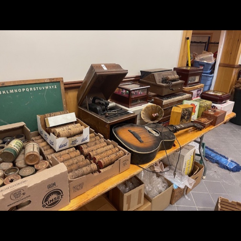 “Ragtime” 25 cent Coin Operated Calliope (Excellent Condition, very Large)(Model 1430G), Stella Disc. Floor Model Music Box (Real Sweet), 36 Music Boxes include Disc & Cylinder Players / Roller Organs, Oak Edison Phonographs, Swiss Music Boxes, Lg. Interchangeable Cylinder Music Box, Olympia/Criterion Disc Player & Misc. Quantity of Music Rolls & Misc. Lifetime Collection!!